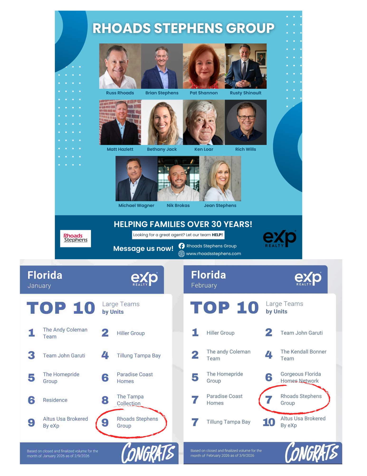 My team The Rhoads Stephens Group has been ranked in the top 10 of all eXp Realty LLC teams in the entire state of Florida Both January and February of 2026. Hot start to the year!! Let us help you buy or sell your next home!!